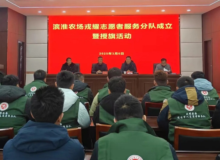 | 為激勵(lì)退役軍人永葆軍人本色,積極響應(yīng)職代會(huì)號(hào)召,助力農(nóng)場(chǎng)產(chǎn)業(yè)高質(zhì)量發(fā)展。3月6日下午,濱淮農(nóng)場(chǎng)“戎耀志愿者服務(wù)分隊(duì)”在社區(qū)開展成立暨授旗活動(dòng)。農(nóng)場(chǎng)公司副總經(jīng)理、工會(huì)主席沈平出席活動(dòng)并講話。 活動(dòng)會(huì)上,沈平將“戎耀志愿者服務(wù)分隊(duì)”隊(duì)旗授于服務(wù)分隊(duì)代表,并對(duì)志愿者服務(wù)分隊(duì)的今后工作提出期望和要求。希望他們發(fā)揮軍人的優(yōu)良作風(fēng),做到紀(jì)律嚴(yán)明,令行禁止。無(wú)論是參與農(nóng)場(chǎng)的生產(chǎn)建設(shè),還是投身社區(qū)的公益服務(wù),都要以高標(biāo)準(zhǔn)要求自己,展現(xiàn)退役軍人的風(fēng)采,續(xù)寫新的榮光。戎耀志愿者服務(wù)分隊(duì)成員表示,將在農(nóng)場(chǎng)公司“聚力攻堅(jiān)志愿隊(duì)”的統(tǒng)一管理指導(dǎo)下,扛起這面旗幟,踐行志愿精神,為農(nóng)場(chǎng)發(fā)展和社會(huì)和諧貢獻(xiàn)全部力量,讓退役軍人的志愿之光在這片土地上熠熠生輝!